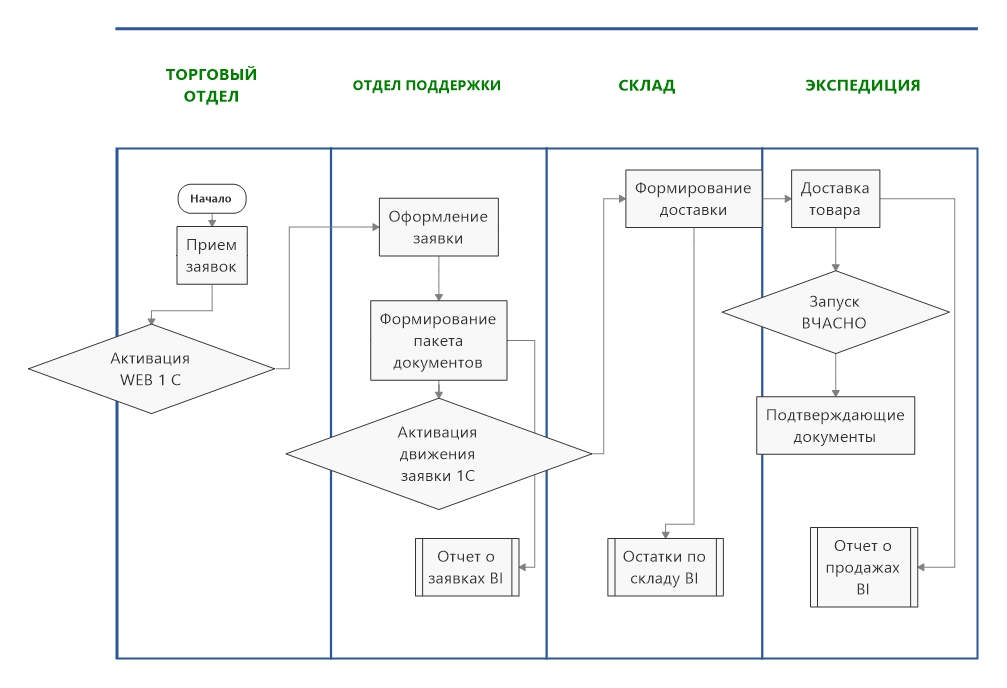 2. Продажі. 1. Заявки на постачання продукції приймалися менеджерами по телефону або за особистого контакту з клієнтом. Поставлено завдання ІТ підключити стандартний WEB модуль прийому заявок. Це дозволило скоротити цілий блок операцій та звільнити ресурс як у відділі підтримки продажів, так і у відділі продажів.