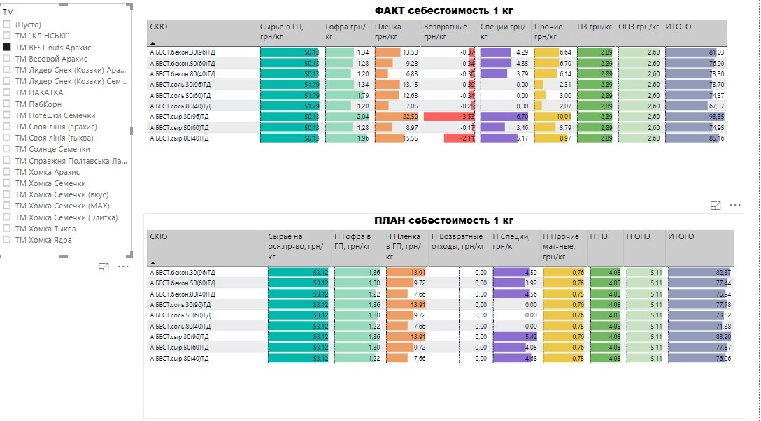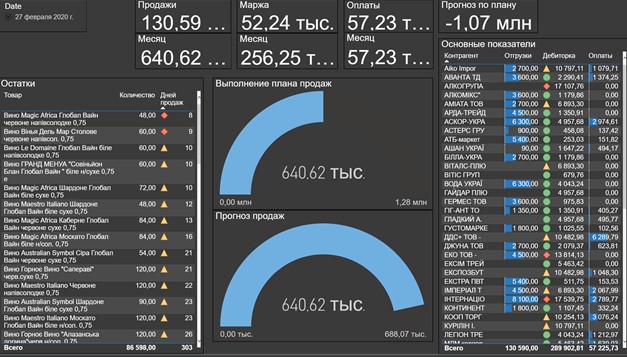 Дашборд щоденної інформації для керівника торгівельної компанії